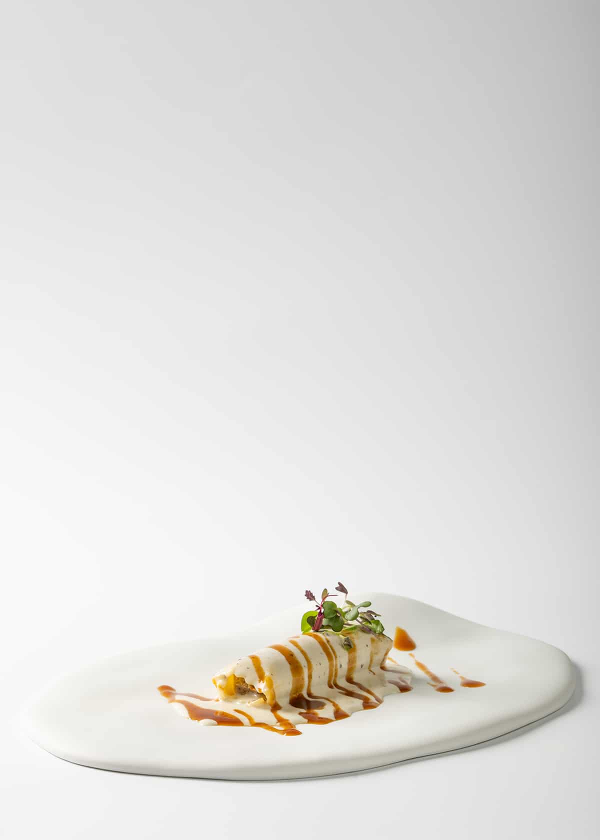 El sabor del rostit de sempre, embolcallat amb pasta fresca, amb la cremositat de la beixamel trufada i la profunditat de la salsa demi-glace.